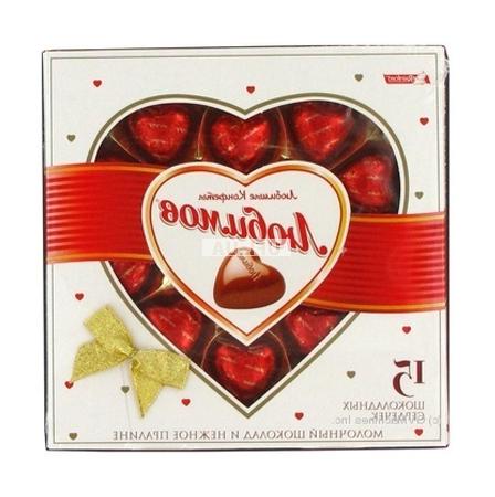 Конфеты Любимов в красивой подарочной упаковке в которой 30 конфет, а именно в одной коробке четыре вида конфет: молочный шоколад с начинкой пралине, черный шоколад с начинкой пралине, молочный шоколад с йогуртовой начинкой, молочный шоколад с начинкой "Тирамису". Ваша любимая действительно оценит такие конфетки.